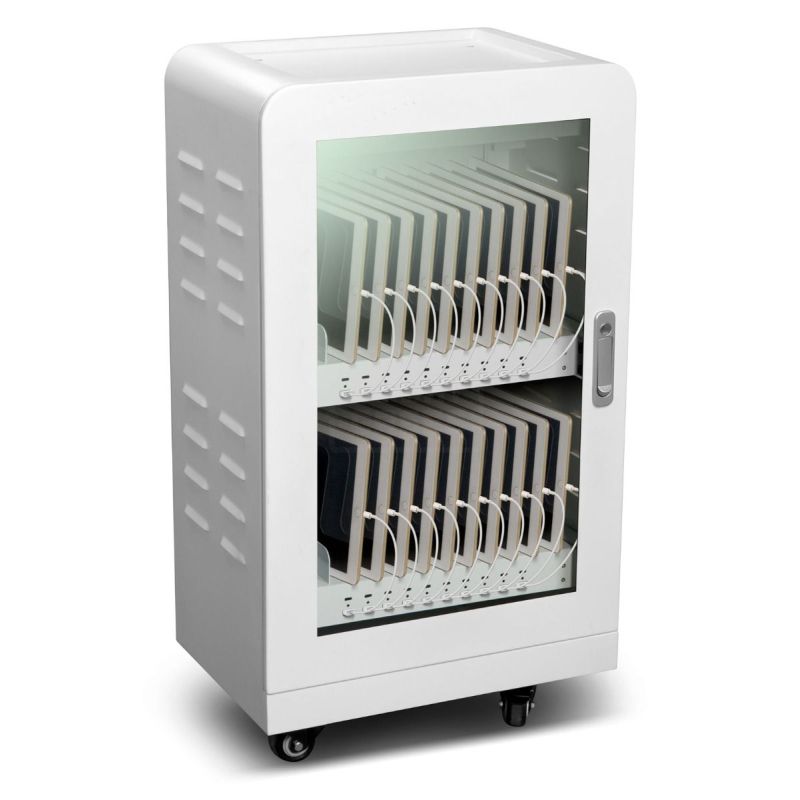 - Hyödyntää älykästä virranjakotekniikkaa ja mahdollistaa 20 kannettavan tai 20 tabletin samanaikaisen latauksen