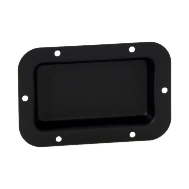 Musta upotuskahva, ilman reikiä. Aukon koko: 115 x 65 mm. Musta. Jauhemaalattua terästä 1 mm. 136 x 89 mm ja syvyys 13 mm. Kiinnitysreiät 5 mm.