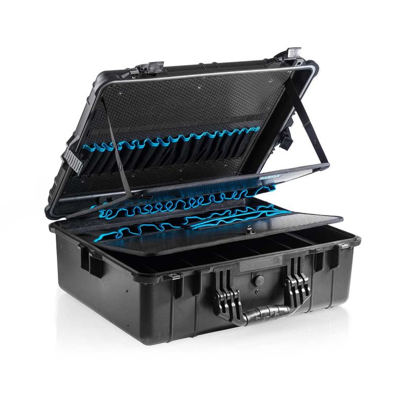 GUARDIQUE Apollo 6062T on meidän oma valmistamamme työkalulaatikko, joka perustuu standardiin Apollo 6062. Meidän Apollo 6062T:ssä olemme asentaneet ammattimaiset työkalulisäkkeet, jotka koostuvat 2 yksipuolisesta ja 1 kaksipuolisesta työkalulisäkkeestä (kaikki irrotettavia). Lisäksi pohjassa on vahvat, säädettävät välilevyt, jotka kaikki voidaan poistaa, jos haluat yhden suuren tilan.