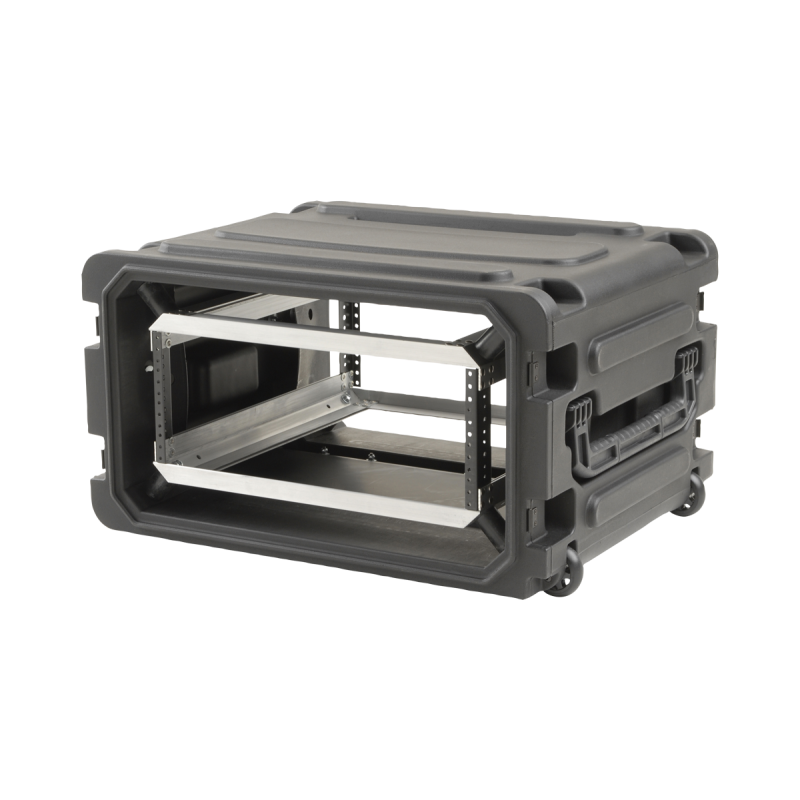 Rolling Shockmount Case -sarjassa on mustaksi jauhemaalatut kiertolukot lukituslenkeillä sekä matalaprofiilinen ruiskuvalettu vetokahva ja 20 tuumaa syvä kestävä kuori. Muotoiltu rakenne lisää jäykkyyttä kansiin ja sivuihin ja mahdollistaa turvallisen pinoamisen. Räkkisyvyys etu- ja takakiskon välillä on 20 tuumaa, ja jokainen kansi on 2-1/4 tuumaa syvä. Ovet ovat täysin käytettävissä myös silloin, kun räkit on pinottu yhteen. Elastomeeriset iskunvaimentimet suojaavat jopa raskaimpia kuormia. Liukuva sisäänvedettävä kahva, paineentasausventtiili, ylimitoitetut alas taittuvat kahvat molemmilla sivuilla, rollerblade-tyyppiset pyörät sekä tiivisteellä suojatut etu- ja takaovet kuuluvat vakiovarustukseen.