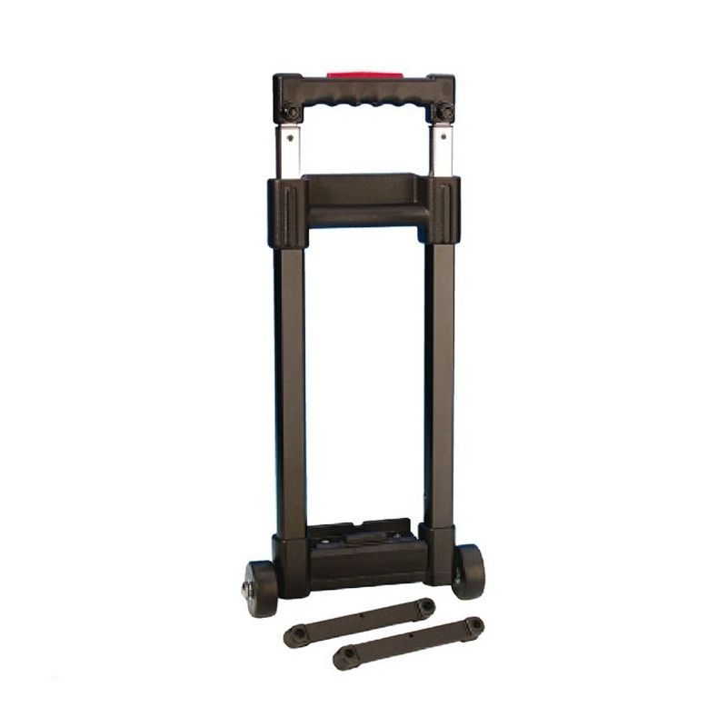 Irrotettava laukkuvaunu, jossa on ulosvedettävä kahva kaksilla alumiinivarsilla sekä 50 mm pyörät teräsakselilla. Vaunu kiinnittyy paikalleen muovikiinnikkeisiin (sisältyvät pakkaukseen).